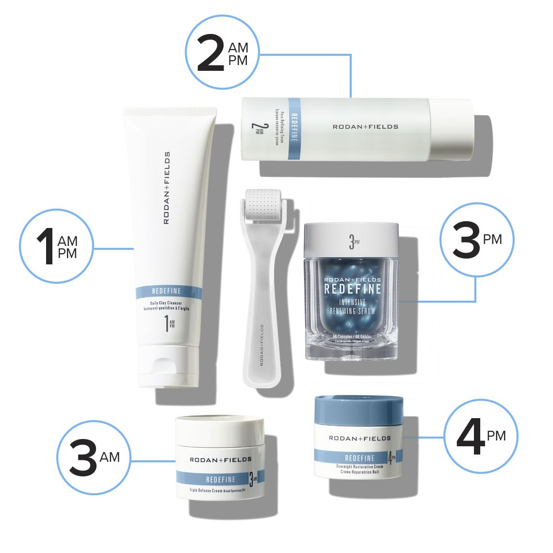 Use the REDEFINE Regimen twice daily in the AM + PM, avoiding the eye area.