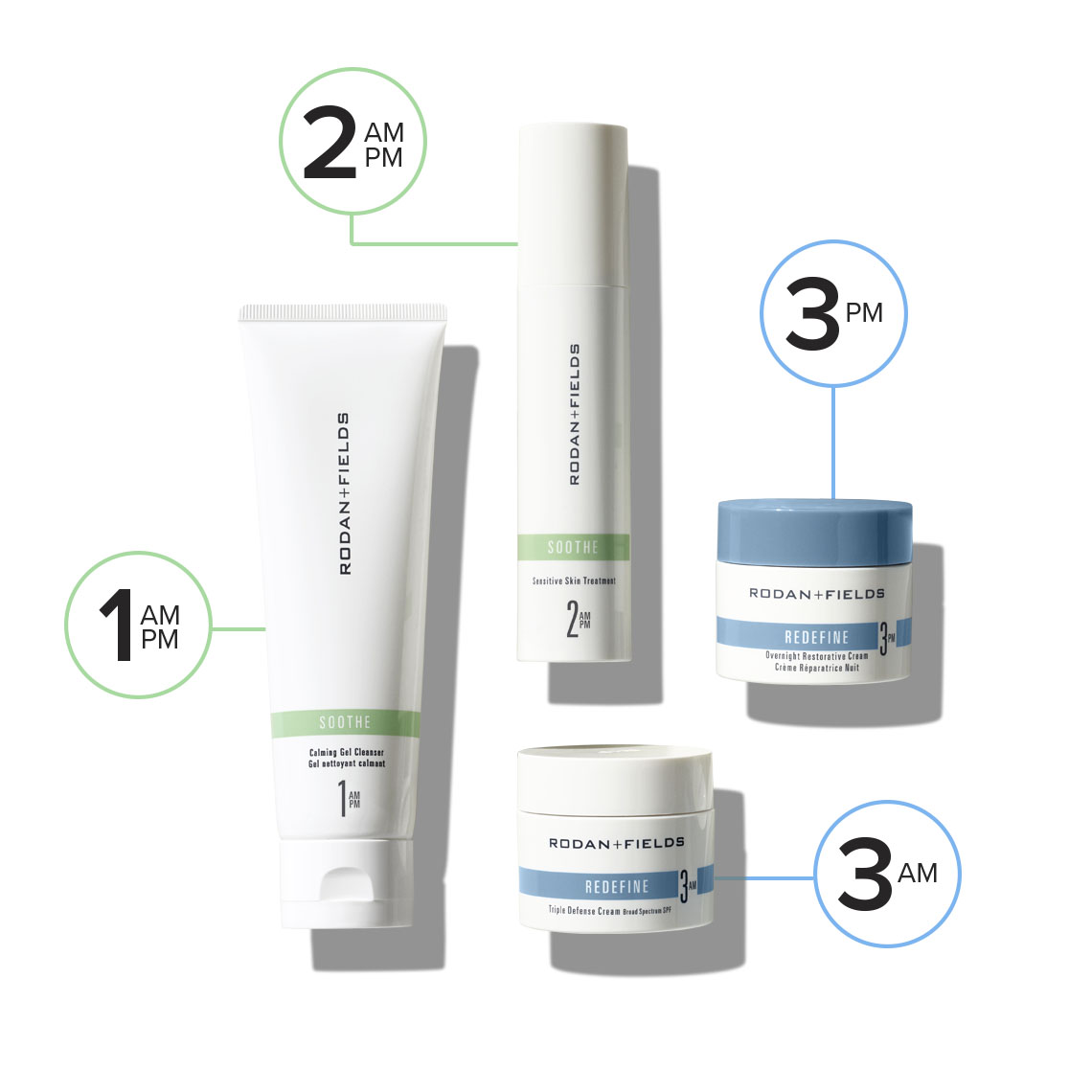 • Step 3 PM: Redefine Overnight Restorative Cream or Reparative Lotion - moisturizes + revitalizes skin’s surface to reduce the appearance of fine lines, deep wrinkles + loss of firmness, plus now visibly lifts, sculpts + defines facial contour while you sleep.