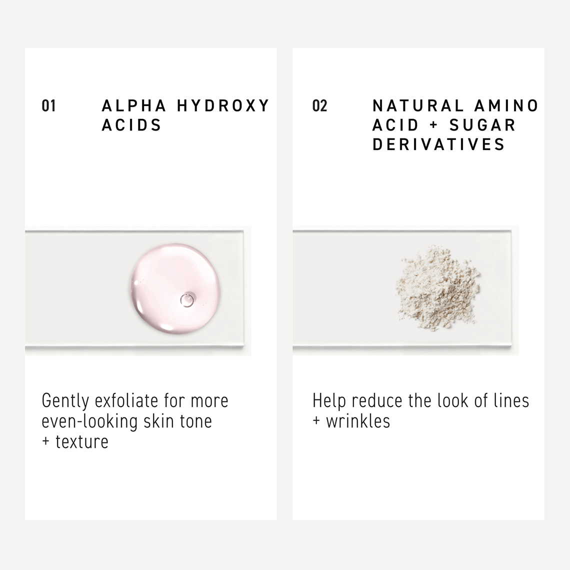 Lather away impurities. Our foaming cleanser with AHAs gently exfoliates and purifies skin as it removes dirt, oil + makeup.